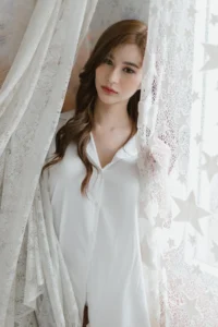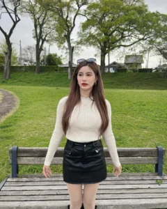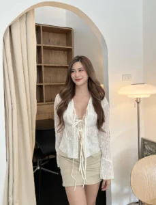 พริตตี้สาวสวย นั้นมีความเป็น สาวเกาหลี และ สาวจีน อยู่ในตัวสูงมาก ๆ แถมด้วยดวงตาที่มีความกลมโตบวกกับรูปหน้าที่จัดว่าเป็นคนหน้าเล็ก และ